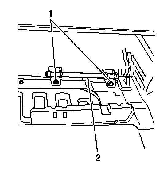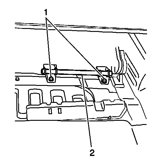 1. Install the rear tether anchor bracket (2) to the vehicle. Secure the rear tether anchor bracket (2) with the bolts (1).