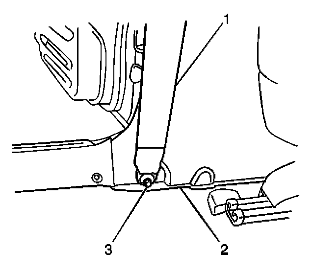 5. Install the front seat belt (3) to the vehicle. Secure the seat belt with the following fasteners: