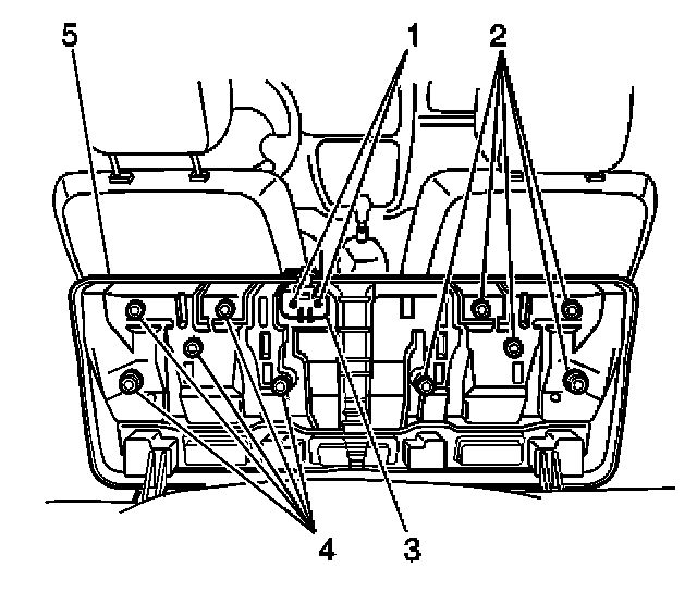 5. Pull the rear seat pull strap and raise the rear seat cushion (5) in order to gain access to the rear seat belt buckle anchor bolt.