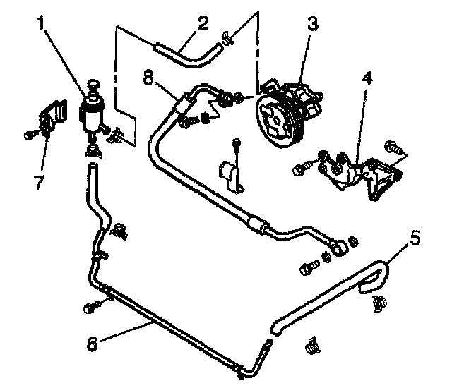 3. Remove the fitting from the power steering pump and from the power steering gear inlet hose (8).