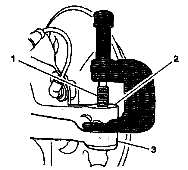 8. Use J6627-A in order to remove the tie rod end (3) from the knuckle (2).