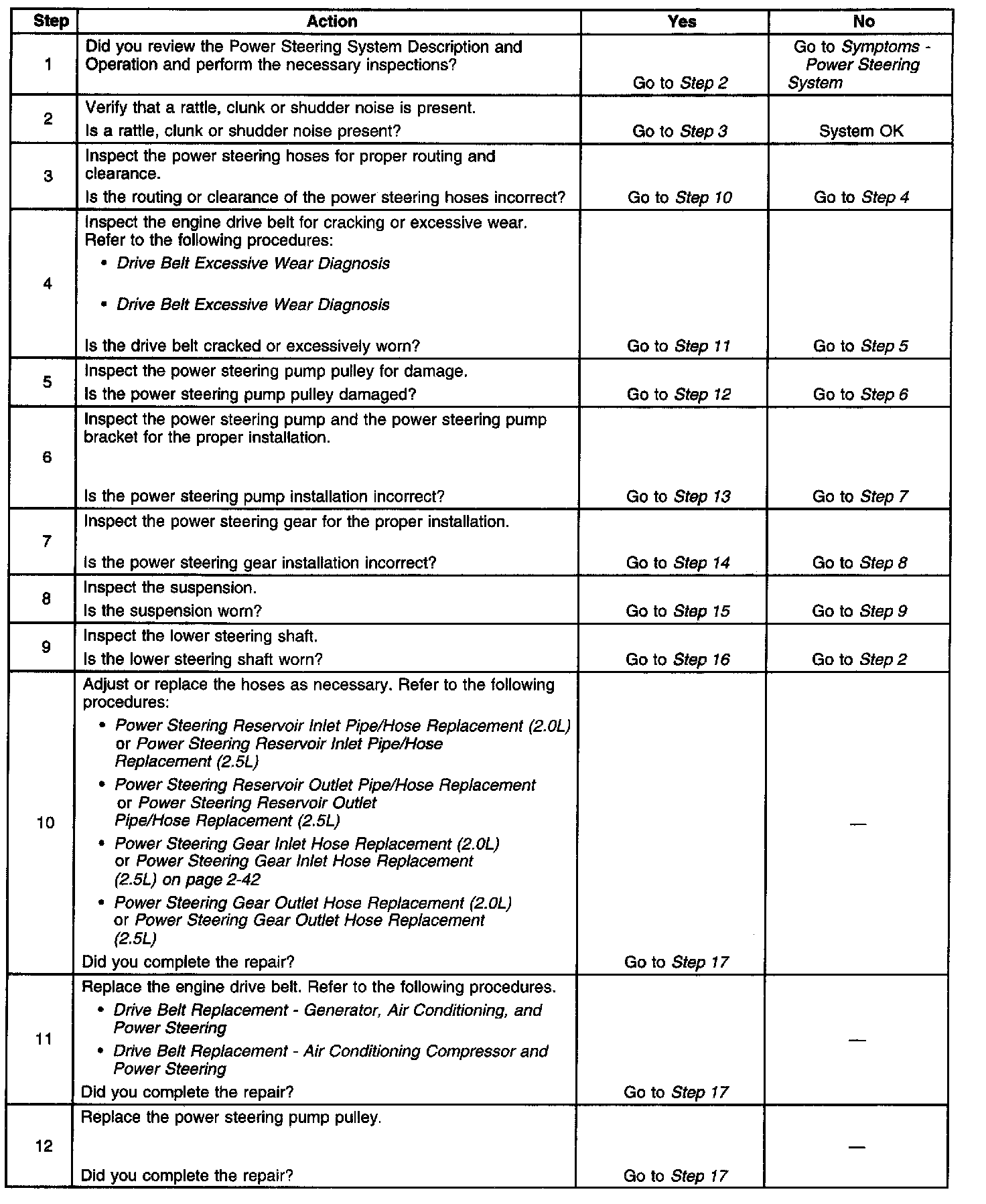 Rattle, Clunk, or Shudder Noise From the Power Steering System