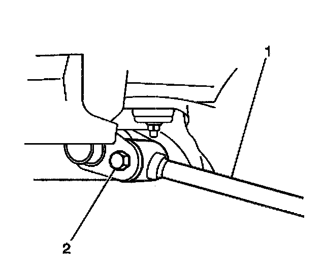 3. Remove the front bolt (2) and the washer from the lower control arm (1).