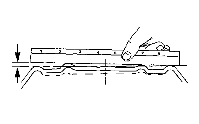 1. Use a straight edge 203 - 229 mm (8 - 9 inch) long. Place the straight edge on the wheel inboard mounting surface. Try to rock the straightedge up and down within the mounting surface.