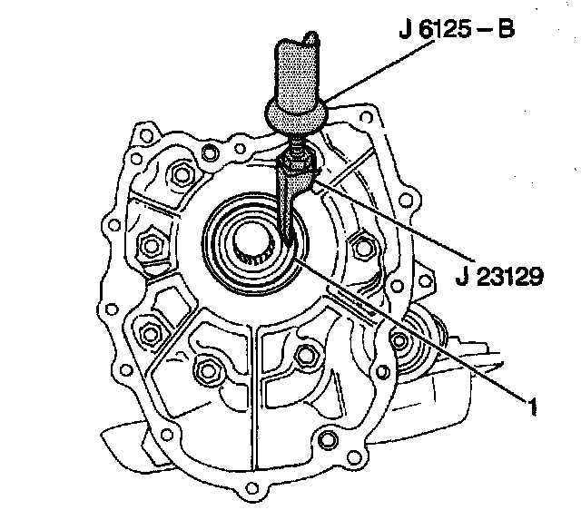 4. Remove the transfer adapter case seal (1) from the transfer adapter case using the J 23129 and the J 6125-B.