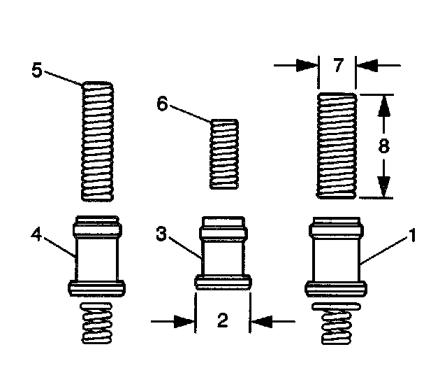 4. Measure the accumulator piston outer diameter and accumulator spring length before installation. Refer to Accumulator Piston and Spring Specifications. Replace as necessary.
