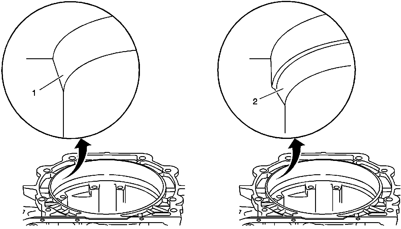 The first phase also machined a case chamfer leading into the pump bore (2). The chamfer is designed to help eliminate possible 0-ring seal damage during pump installation.