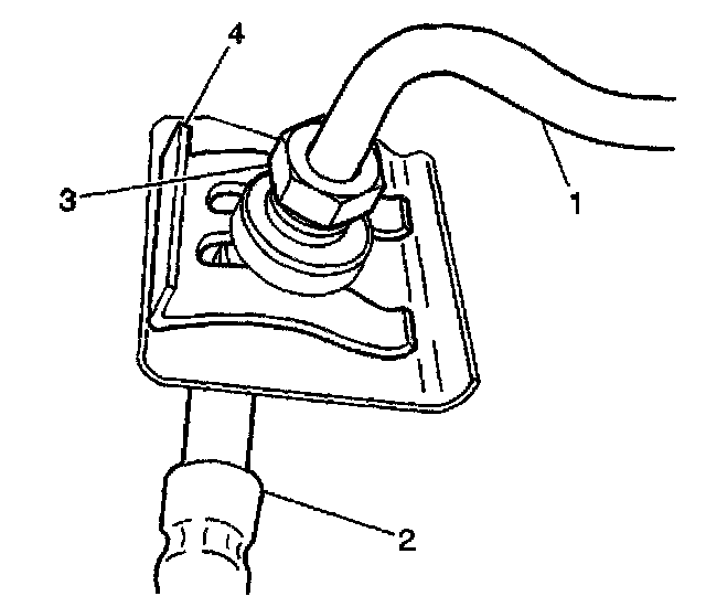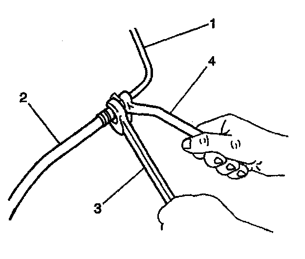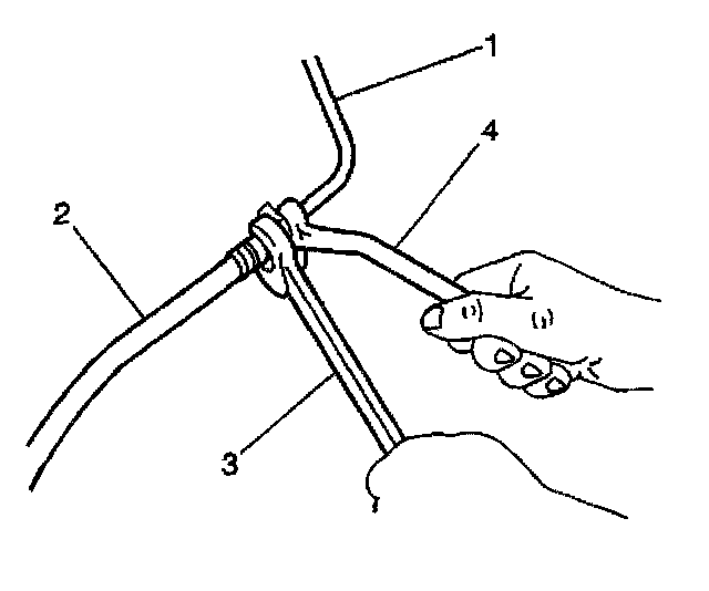 6. Remove the flare nuts from the hose (2) and pipe (1) with 2 wrenches (3, 4).