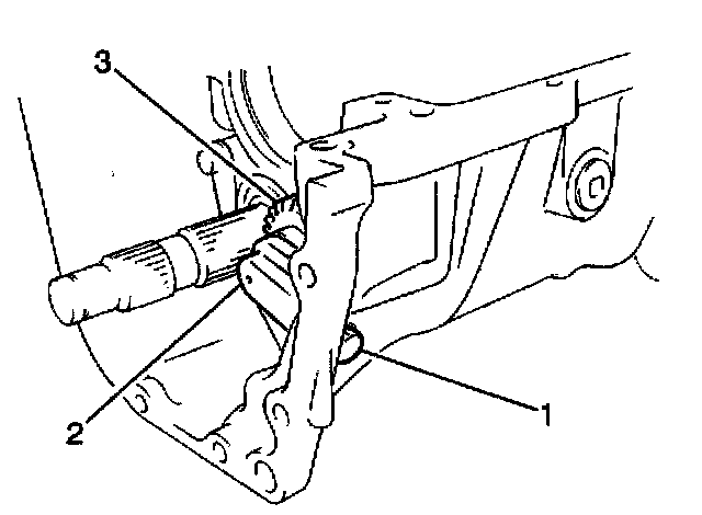 11. Apply Loctite(TM) 414 GM P/N 12345493 or equivalent to the threaded portion of the reverse idler shaft bolt (3).