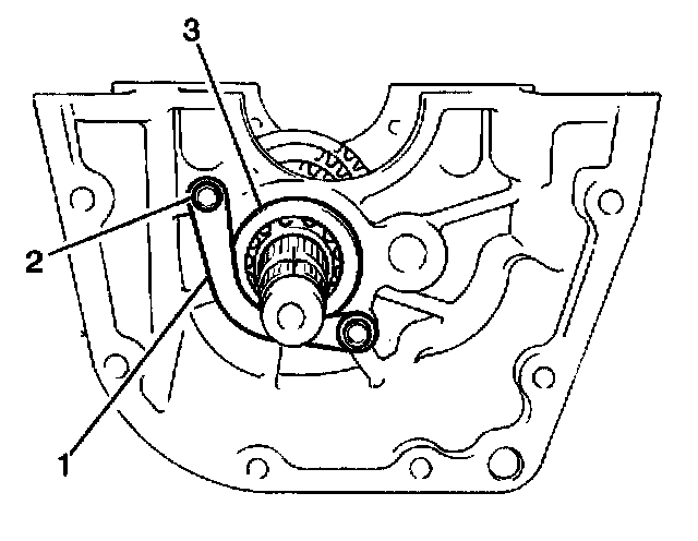 7. Remove the front countershaft bearing C-ring (3) from the front countershaft bearing (2).