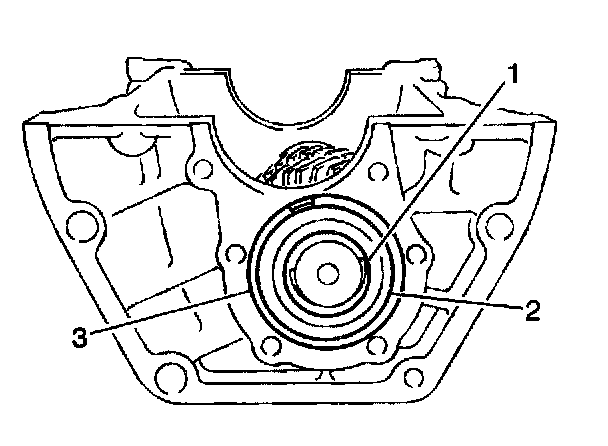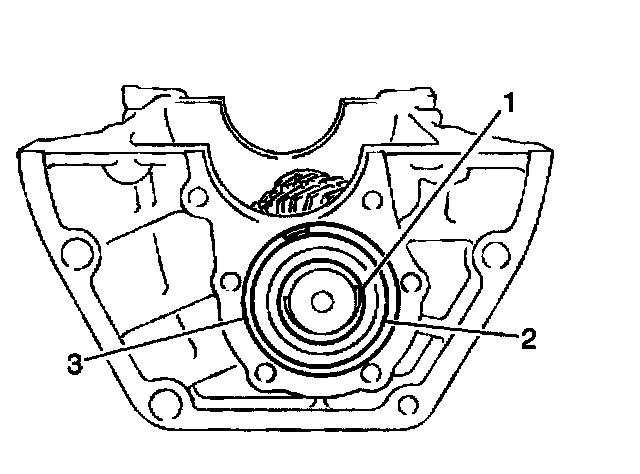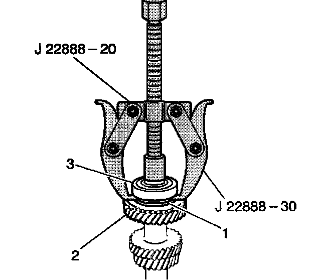 11. Use the J 22888-20 and the J 22888-30 in order to remove the front countershaft bearing (3) from the countershaft (2).