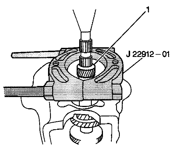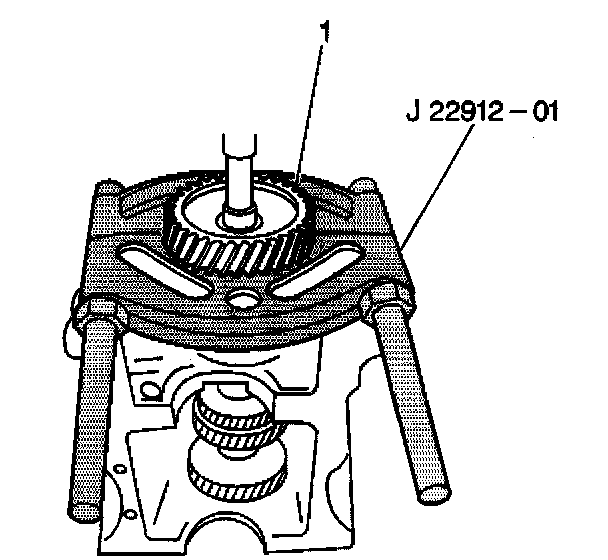 3. Use the J 22912-01 in order to remove the 5th gear (1).