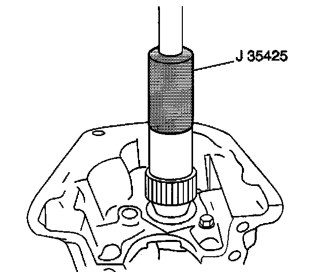 4.3. Use the J 35664 and the J 37754 in order to press the countershaft and the center bearing (1) into the lower case.