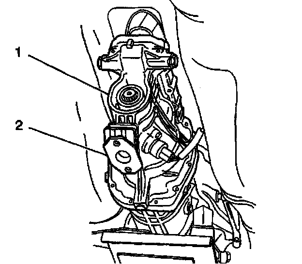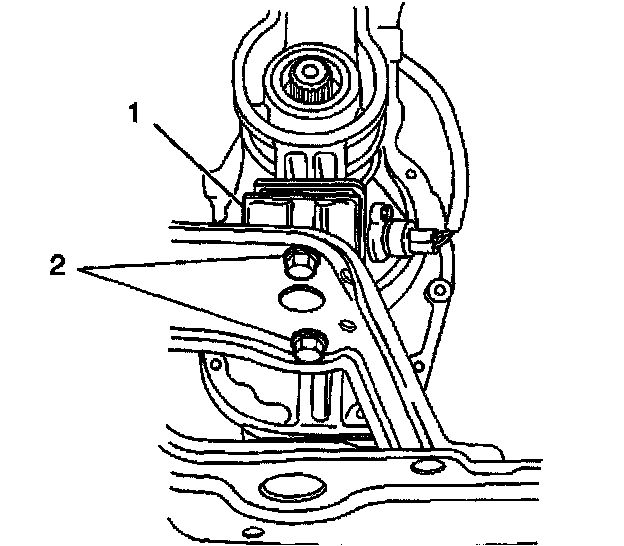 1. Install the rear transmission mount (2) to the extension case (1). Secure with 1 bolt.