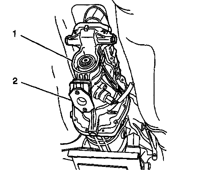 6. Remove 1 bolt and the rear transmission mount (2) from the extension case (1).