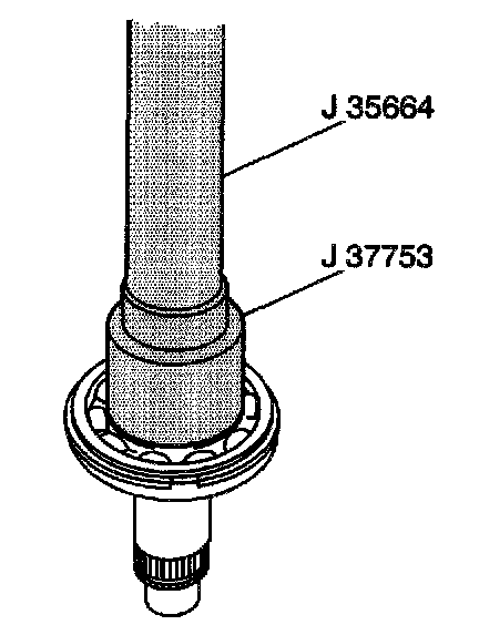 17. Use J 37753 with J 35664 and a press arbor in order to install the rear output shaft front bearing onto the rear output shaft.