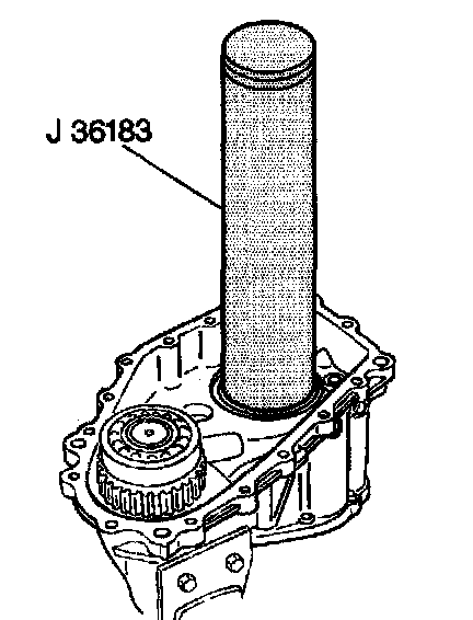 19. Use J 36183 in order to install the rear output shaft into the center case.