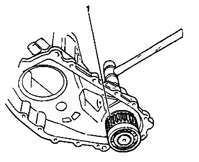 39. Using a plastic mallet, remove the front output shaft and the bearings (1) from the center case.