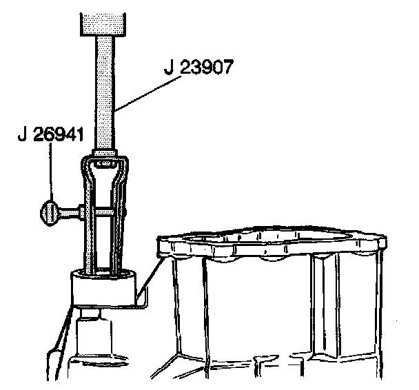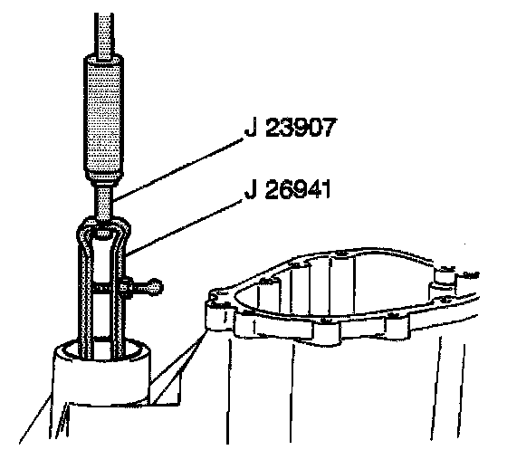 46. Using J 26941 with J 23907, remove the input gear oil seal from the front case.