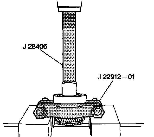 48. Use J 22912-01 with J 28406 and a press arbor in order to remove the input gear bearing from the input gear.