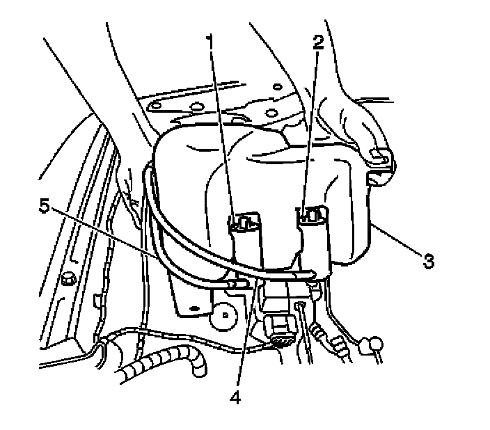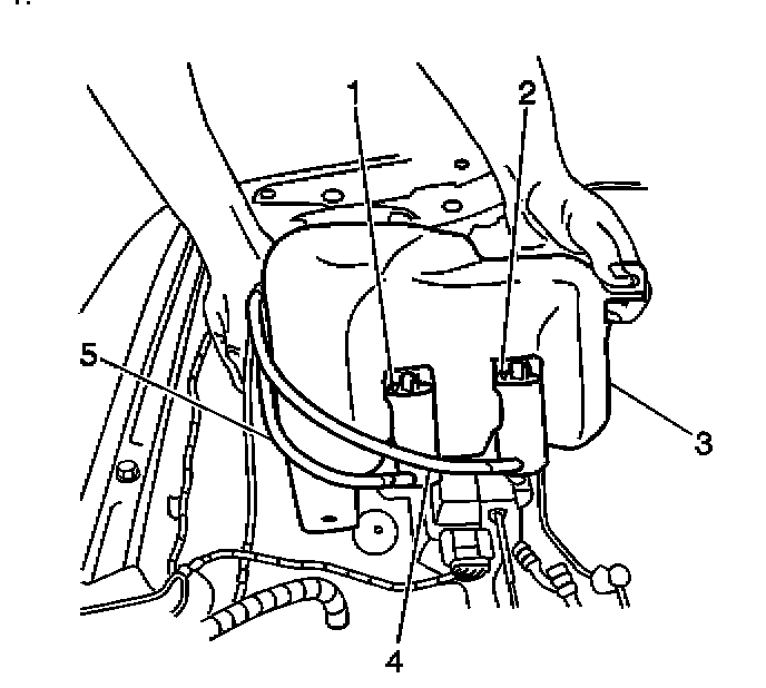 3. Drain the washer solvent from the washer solvent container (1) into a clean drain pan (2).