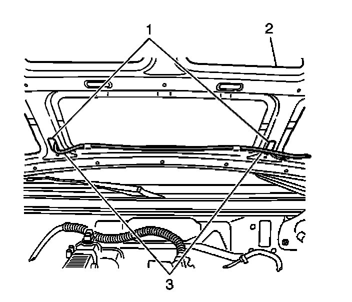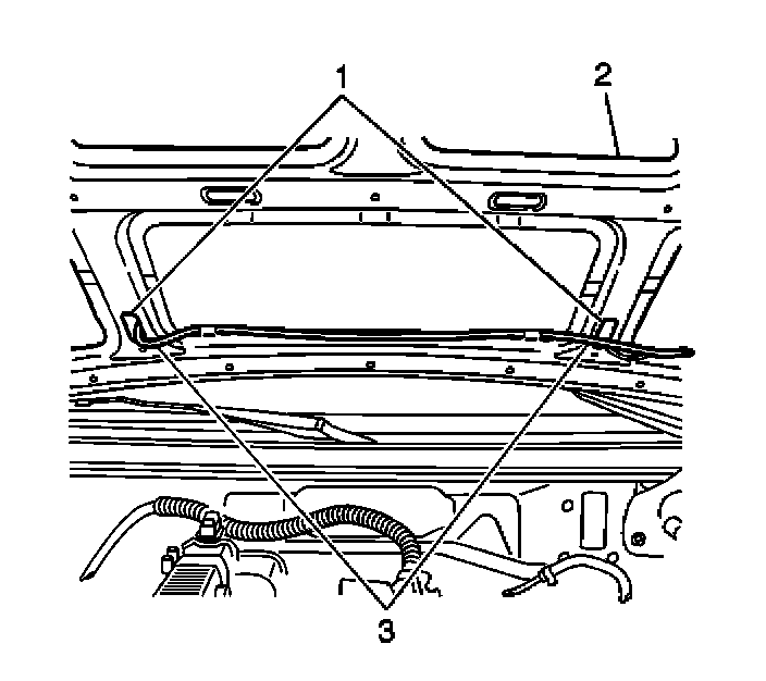 2. Disconnect the windshield washer nozzle hose (3) from the windshield washer nozzle (1).