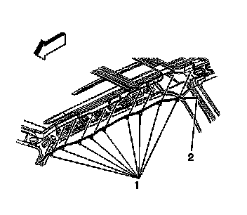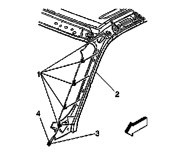 2. Lower the headliner. Refer to Headliner Replacement in Interior Trim.
