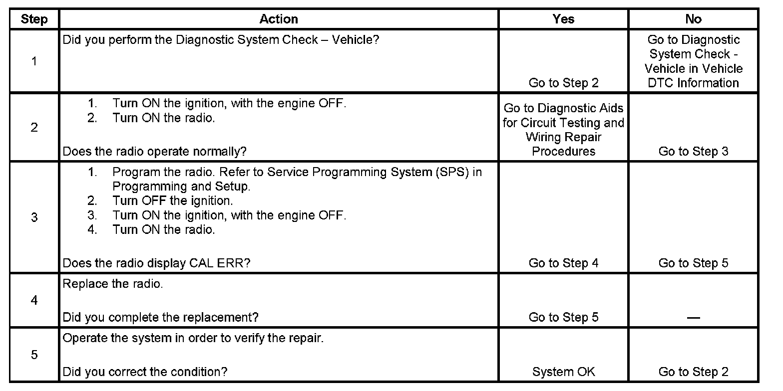 Radio Displays CAL or CAL ERR (With RPO UM8)