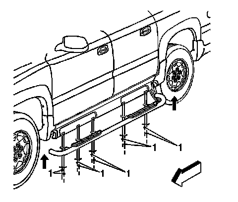 1. With the aid of a helper, remove the retaining nuts and the spacers (1) from the bottom side of the assist step, and remove the assist step from the vehicle.