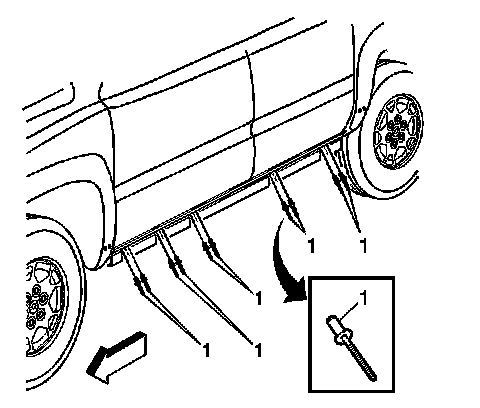 7. Install the rivets (1) that secure the assist step brackets to the rocker panel.