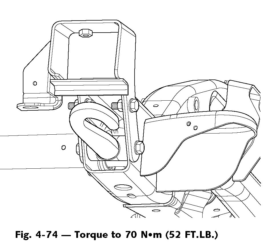 8. Install fasteners supplied. Torque bracket fasteners to 70 N.m (52 ft.lb.) (Fig. 4-74).