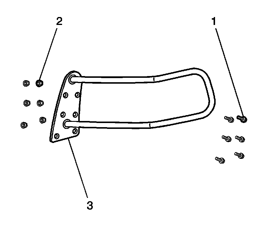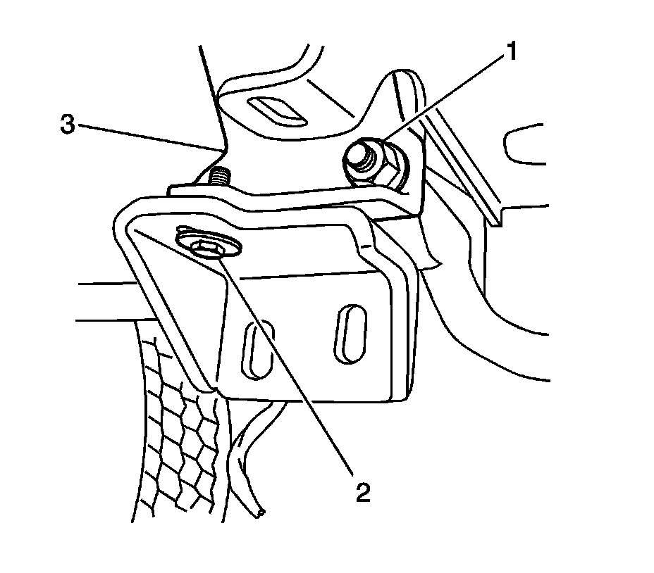 15. Remove the upper guard support bracket (3) from the vehicle.