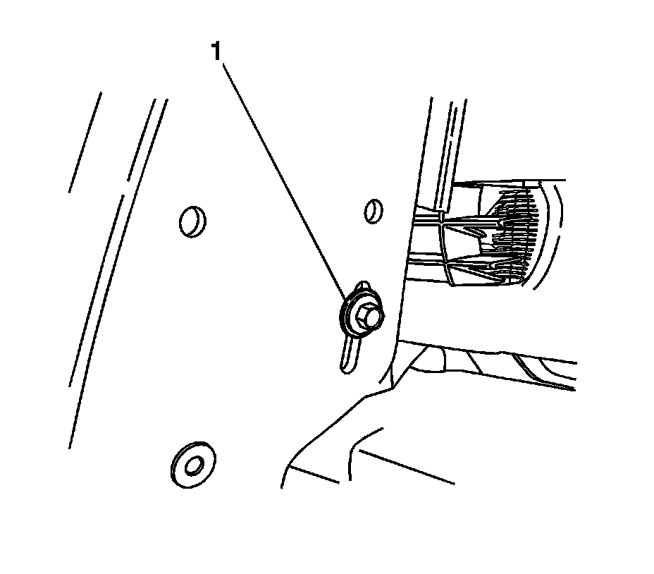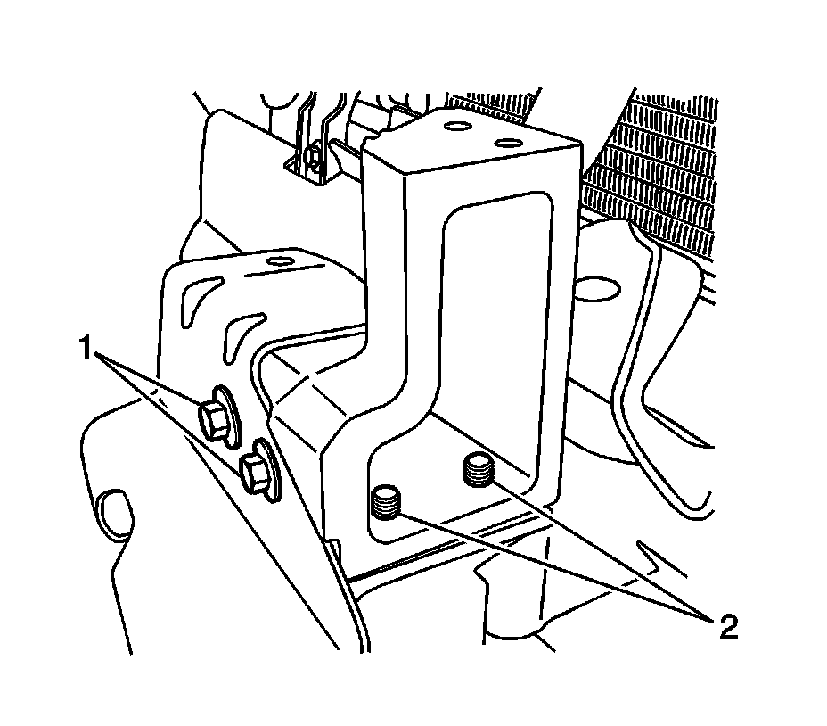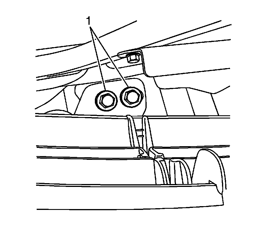 6. Remove the 2 lower front end guard assembly fasteners (1) from the lower support bracket.