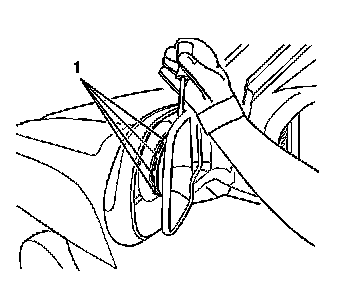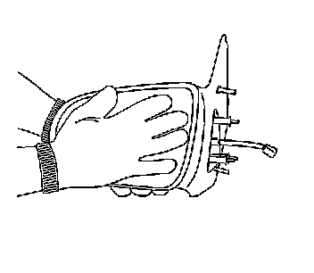 3. With a twisting motion of the flat bladed tool, separate the mirror face from the adjuster mechanism by releasing the mirror face retention clips (1).