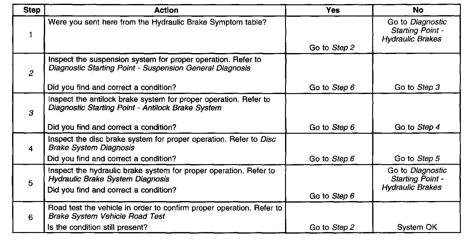 2. Suspension components that are not operating properly may cause a disturbance to the vehicle during application of the brake system.