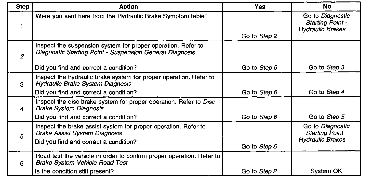 2. Suspension components that are not operating properly may cause a disturbance to the vehicle during application of the brake system.