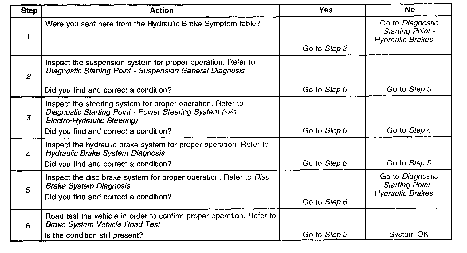 2. Suspension components that are not operating properly may cause a disturbance to the vehicle during application of the brake system.