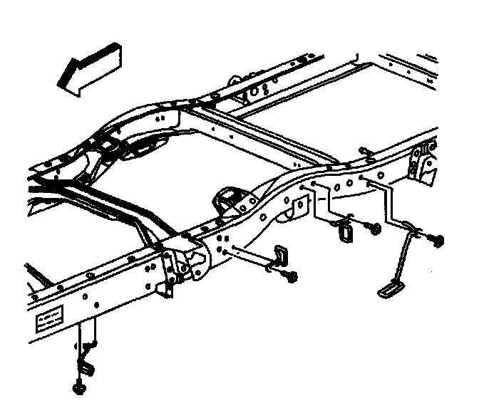 3. For cutaway vehicles, remove the park brake cable guide bolt from the frame.