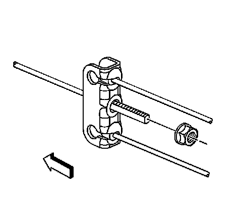 4. If vehicle is a 1500 series with the second design or a 2500 series, install the nut to the threaded end of the intermediate cable.