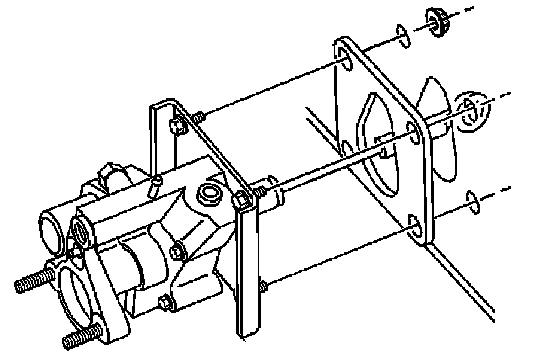 ^ Connect the reservoir outlet hose to the booster unit. Keeping the hose end higher than reservoir, reposition the reservoir onto the mounting studs.