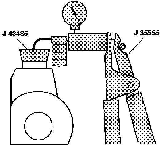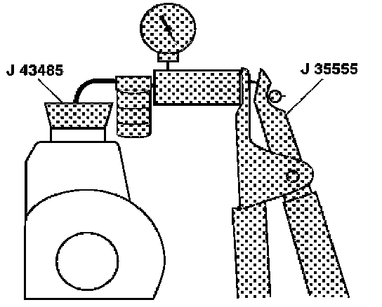 14. Place J 43485 on or in the pump reservoir filler neck.