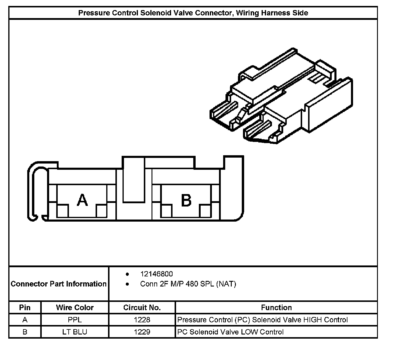 Pressure Control Solenoid Valve Connector, Wiring Harness Side:
