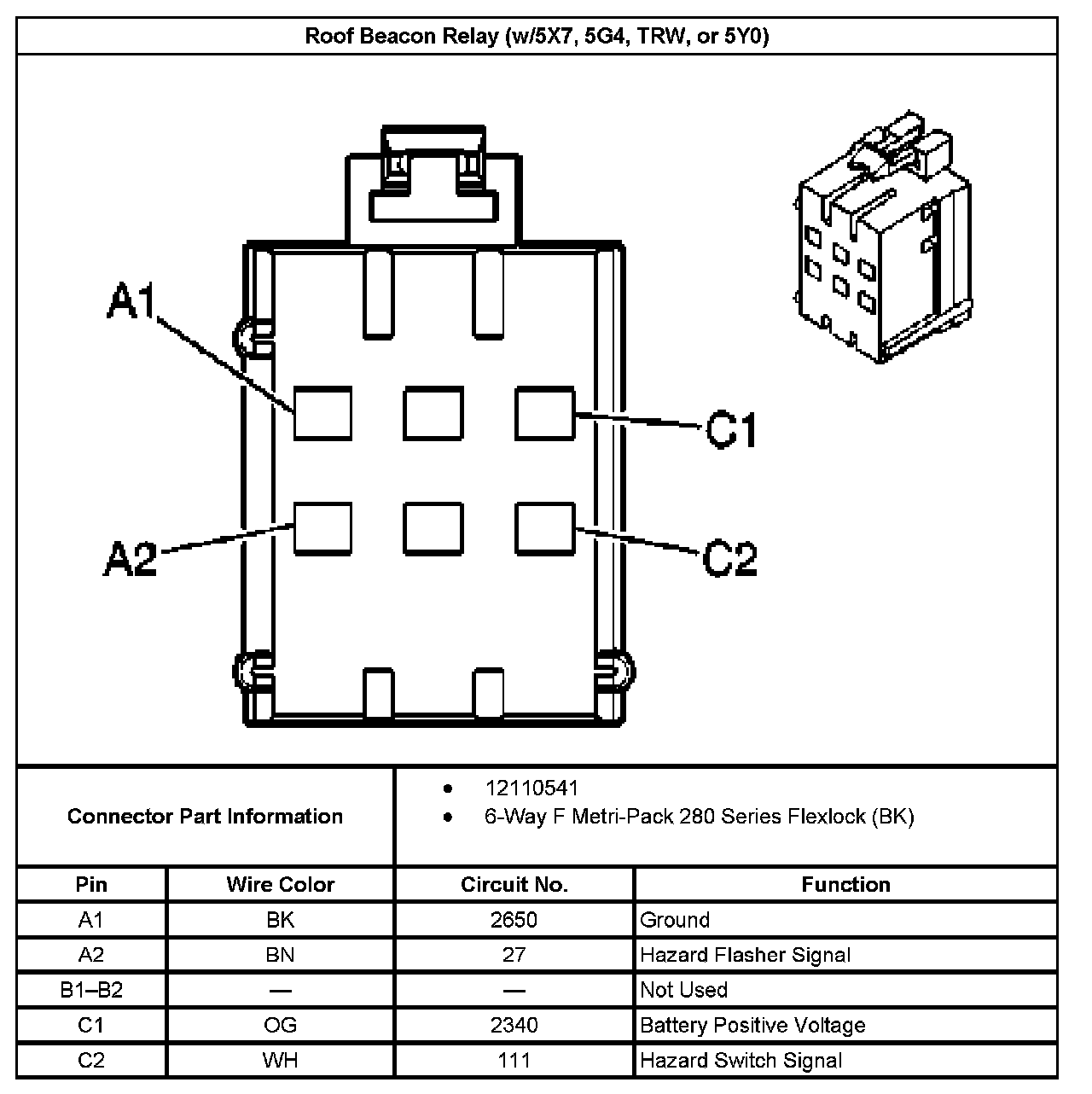 Roof Beacon Relay (With RPO Code 5X7, 5G4, TRW, Or 5Y0):