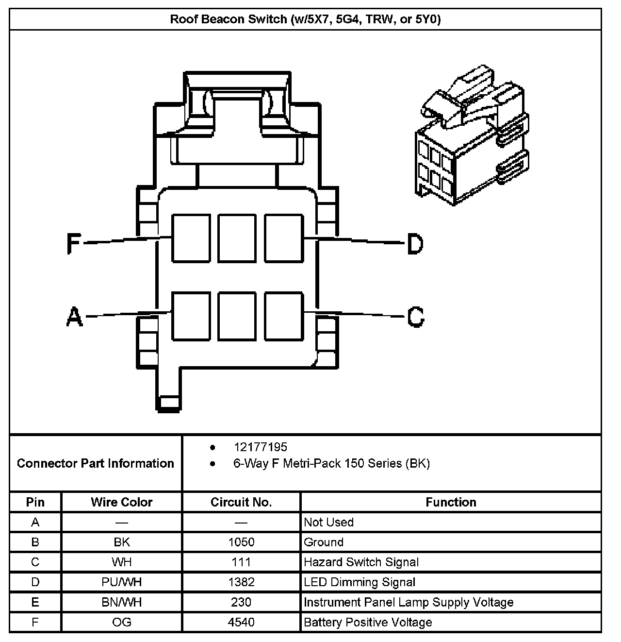 Roof Beacon Switch (With RPO Code 5X7, 5G4, TRW, Or 5Y0):