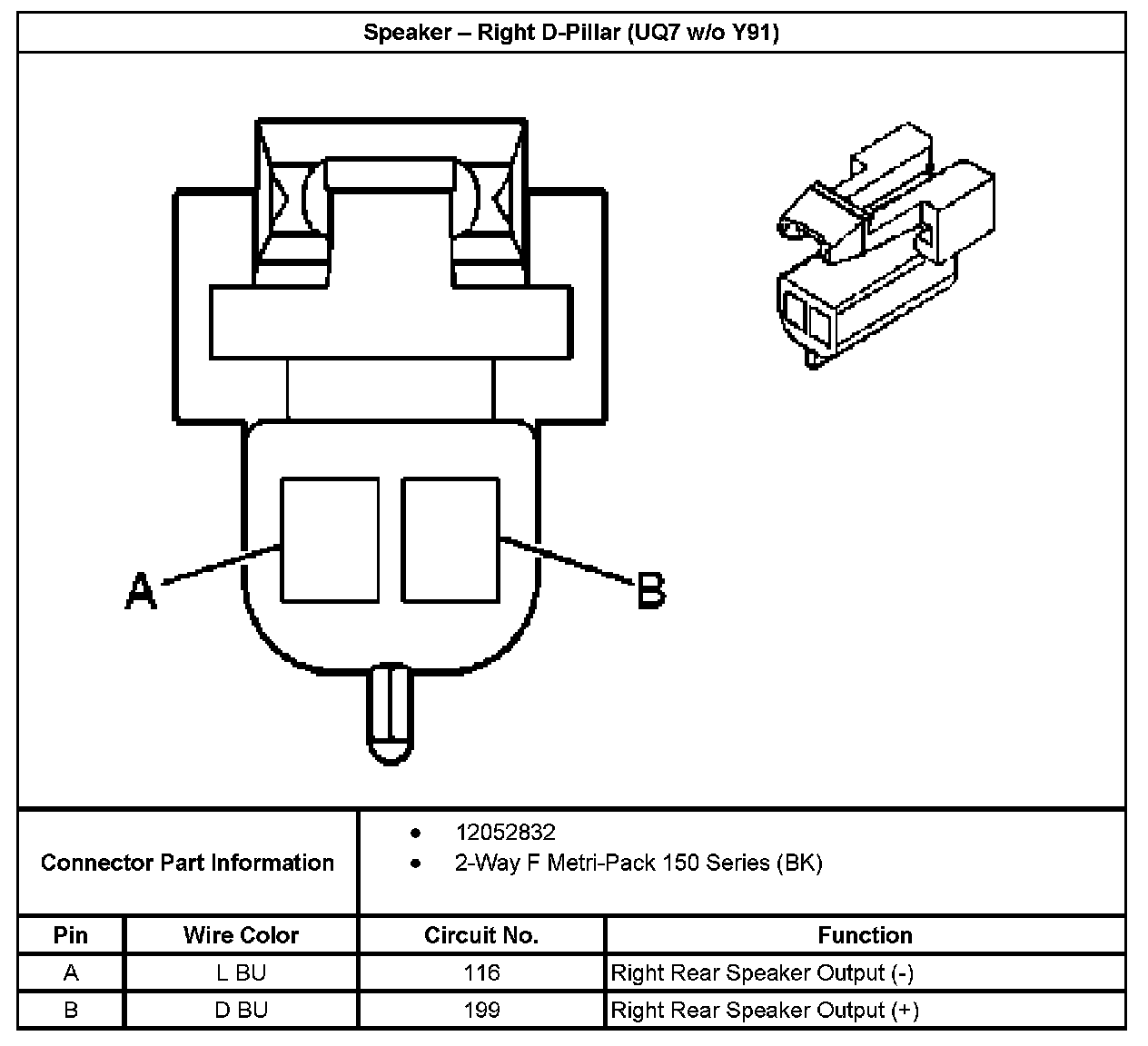 Speaker - Right D-Pillar (With RPO Code UQ7 Without RPO Code Y91):