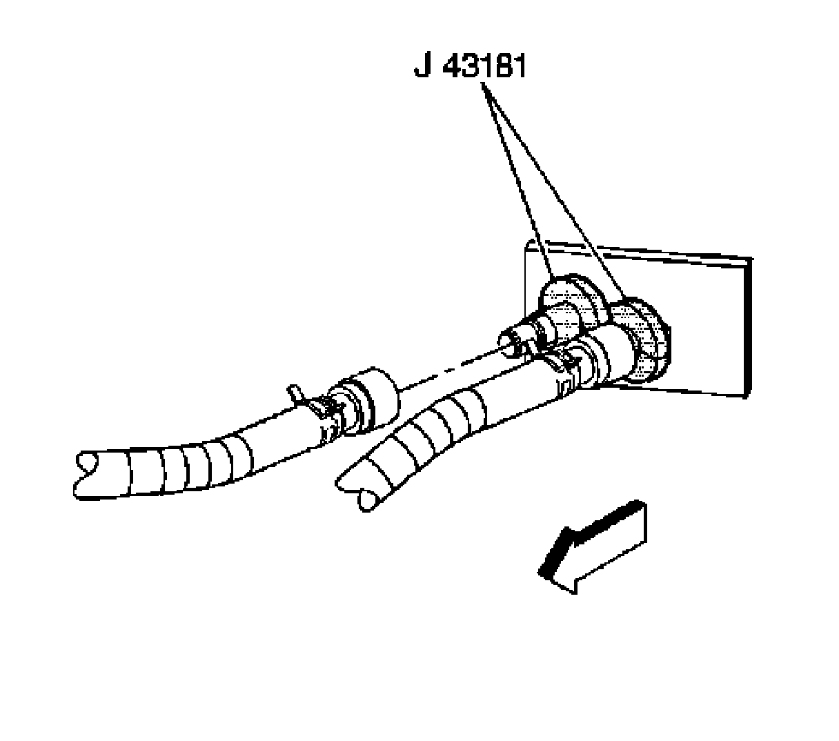 6. Install the J 43181 to the surge tank outlet hose (black connector).