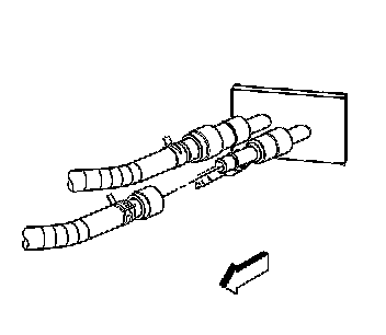 7. If equipped without RPO C36 auxiliary heater, connect the surge tank outlet hose to the heater and blower module.Firmly push the hose onto the heater and blower module pipe until an audible click is heard.