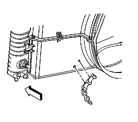 2. If equipped with the engine oil cooler, Install the oil cooler hose clip to the lower fan shroud.