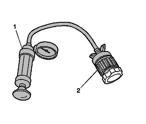 3. Use the J 24460-01 (1) with J 42401 (2) in order to test the pressure cap.