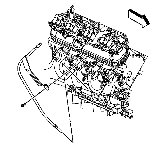 3. Install the oil level indicator tube between the exhaust manifold and engine block.
